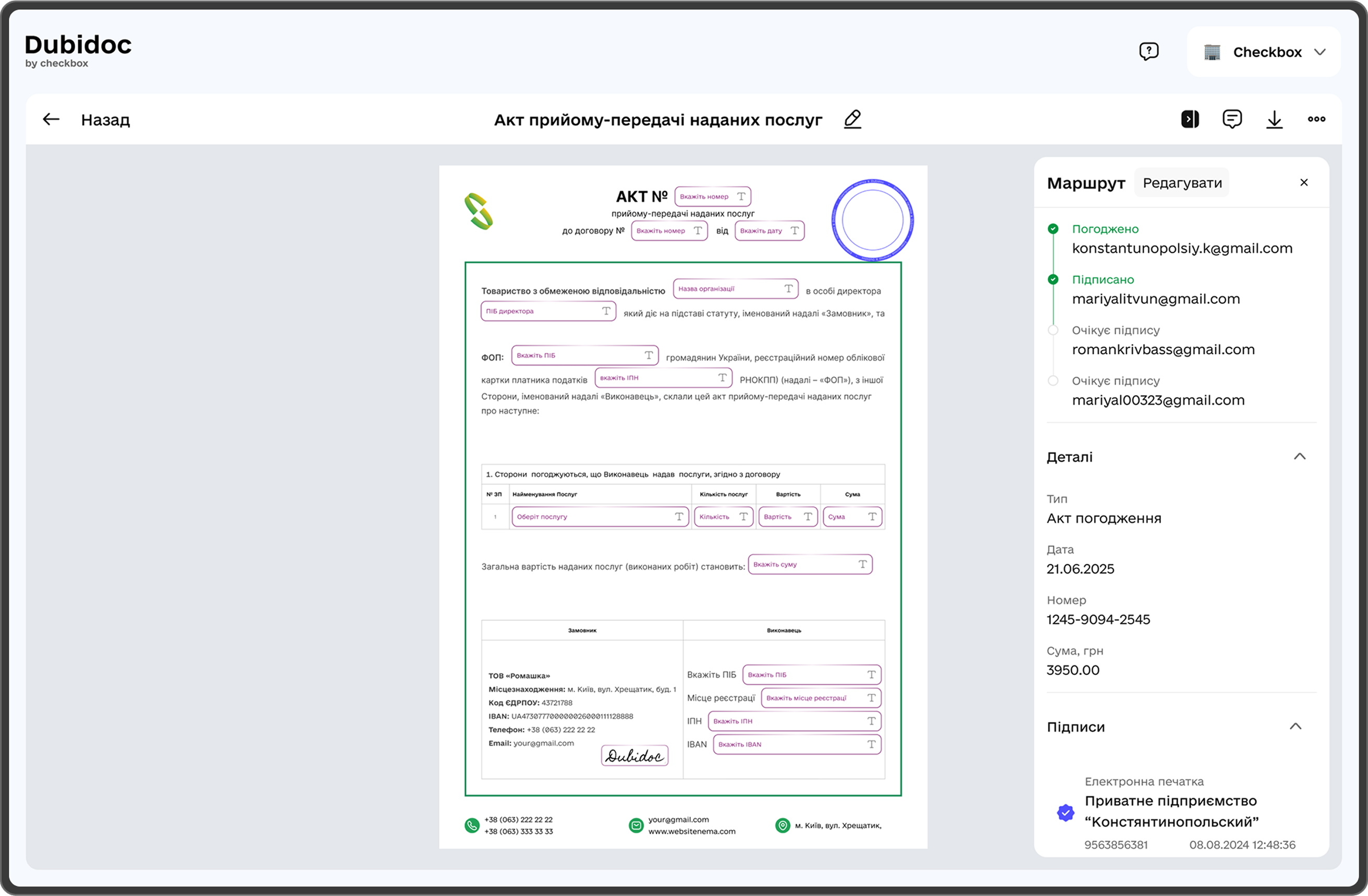 Задавайте маршрути для узгодження документів, відстежуйте статус кожного етапу та отримуйте результат в одному місці